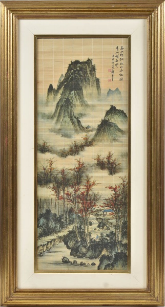 • Fabuloso e raro painel em bambu com representação das 5 Montanhas Sagradas da China. A mitologia chinesa conta que cinco montanhas originaram-se a partir do corpo de Pangu, divindade criadora do mundo. Ao longo do tempo foi se estabelecendo o conceito de montanhas sagrada, título que cinco delas carregam, são elas: A Tai Shan é a montanha tranquila, sendo chamada  de Chefe das Cinco Montanhas Sagradas e Primeira Montanha sob o Céu, pois está associada ao nascer do Sol, significando nascimento e renovação - 2 Huá Shn, a Grande Montanha do Oeste. Conhecida como símbolo de esplendor, Grande Montanha do Ocidental. Ela é conhecida como a montanha precipitada número um sob o céu. - 3 Héng Shn, a grande Montanha do Sul. Também conhecida como Nan Yue. Considerada símbolo de equilíbrio, estende-se por 150 quilômetros com 72 picos. O ponto mais alto  é o pico Zhurong, com uma altitude de 1.290 metros acima do nível do mar. - 4 Héng Shn, a Grande Montanha do Norte, localizado no condado de Hunyuan, no norte da China, a Heng estendeu-se por 150 quilômetros, com 108 picos, com uma altitude média de 2.017 metros. Ela é conhecida por suas cristas íngremes, picos esplêndidos, templos de formas exóticas e fontes de água. É considerada um símbolo de permanência. 5 - Sng Shnm, a Grande Montanha do Centro Localiza-se na margem sul do Rio Amarelo, no noroeste da província de Henan, cerca de 63 quilômetros a sudoeste da cidade de Zhengzhou. Com 60 quilômetros de extensão, cobre uma área de 450 quilômetros quadrados. Seu pico mais alto é o Liantian, com 1.512 metros acima do nível do mar. É nesta montanha que fica o Templo Shaolin, local mundialmente conhecido pelo treinamento de monges na arte do kung fu. Assinado e selado  - (CM 89X48 / SM 67X26)