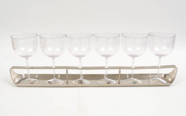 • Art Nouveau - Elegante suporte prateado para taças de hastes alongadas e finas. Contraste WMF O/I XO.  68X10 cm, (taças meramente ilustrativas , não acompanham o suporte)