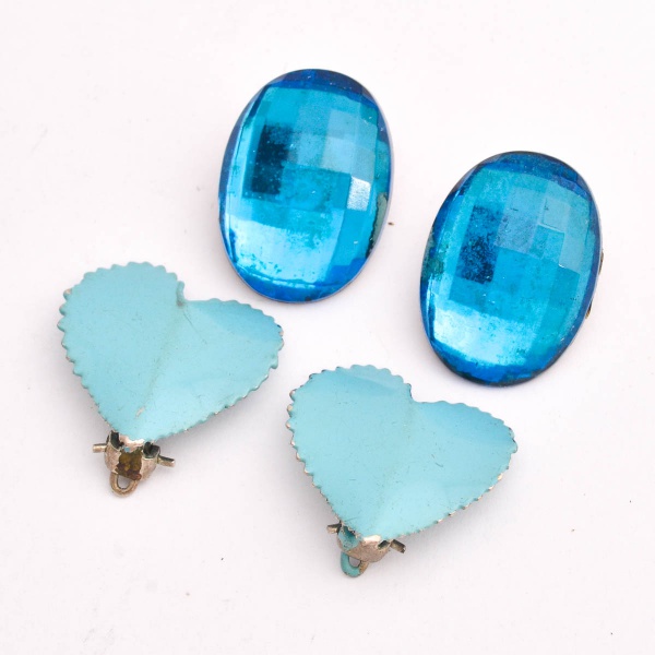 • Vintage - Lote com dois pares de brincos de pressão azuis ,sendo coração de metal esmaltado e outro oval. Tamanho médio 2 cm