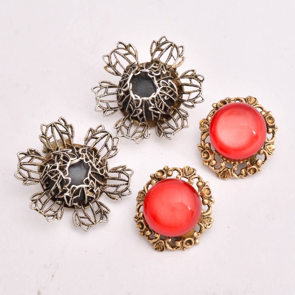 • Vintage - Lote com dois pares de brincos de pressão com tramas em aluminio,  contas peroladas vermelha e preto. Tamanho médio 2 a 3cm