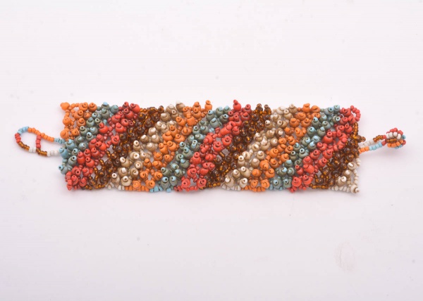 • Larga pulseira de miçanga multicolorida trabalhada verticalmente. 5 cm larg x 16 cm aberta