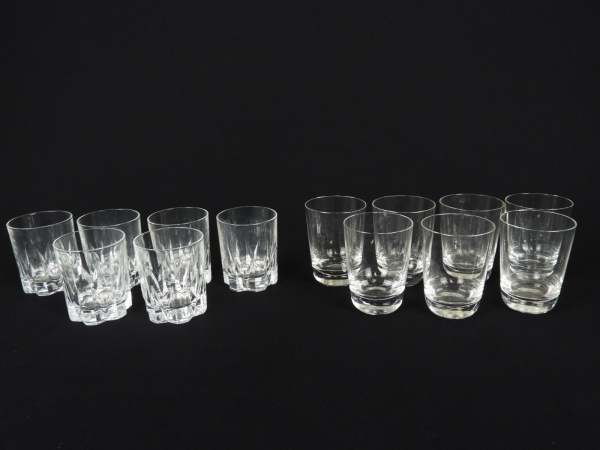 • Lote de copos para shot , sendo 7 de cristal liso e 6 demi cristal com base facetada em bandeiras. Total 13 itens.