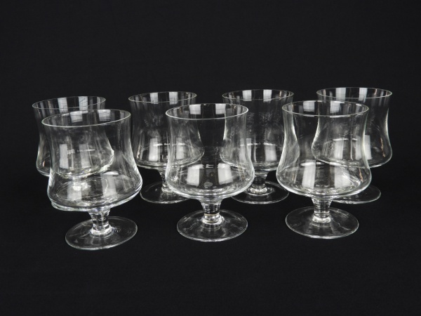 • Conjunto de 7 taças para coquitel de camarão em demi cristal translucido e liso. ausência dos bolws superior. 13x9,5 cm