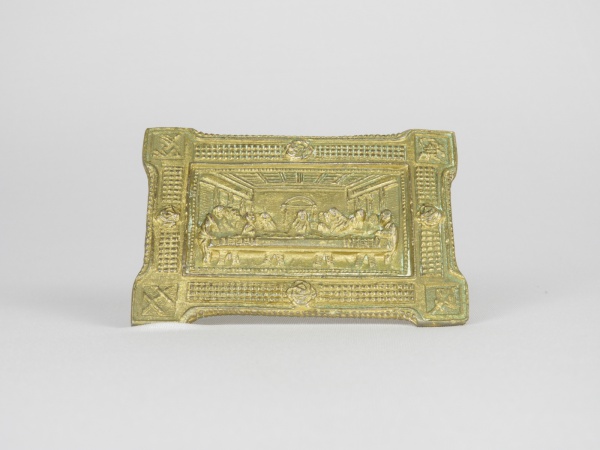 • Singela placa de bronze com relevo da Última Ceia, adequada para pequenos altares , oratórios ou elemento devocional em capelas domésticas. 10x7 cm
