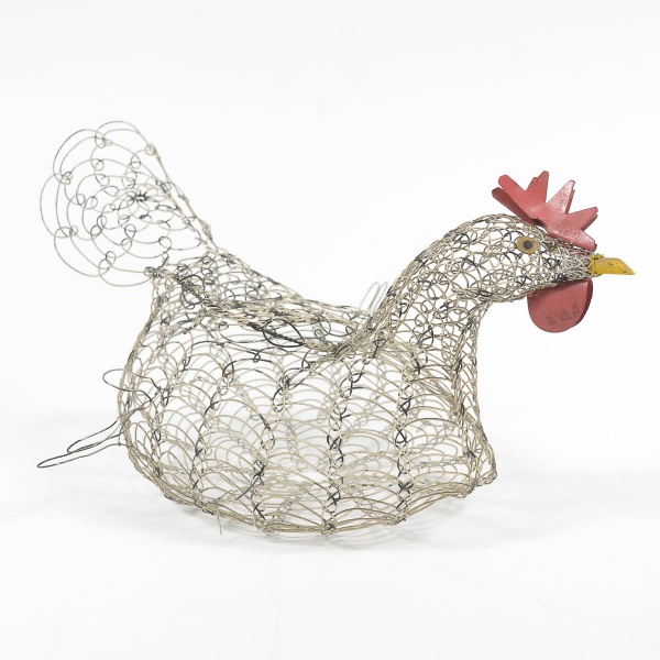 • Antiga Galinha porta ovos em metal "trançado"  e policromado. Obs.: Marcas do tempo, no estado.  35x18x18 cm.