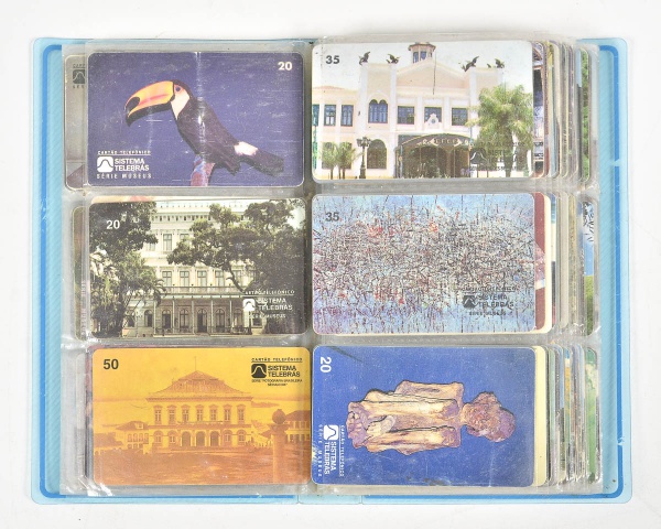 • Colecionismo - Coleção de cartões de telefone. Lote composto por 180 cartões diversos, acompanha estojo.