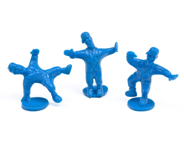 • Tres raros Bonecos de borracha azul do Sergio Malandro em posições distintas- Década.de 80. item de coleção.  5x4x2,5 cm.