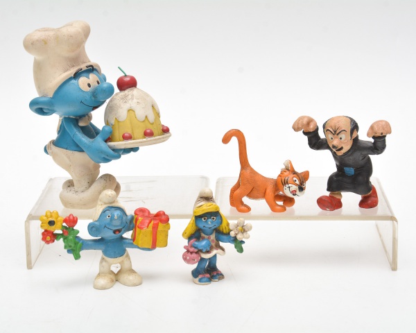• Lote contendo 5 pequenos brinquedos em plastico rígido do desenho OS SMURFS. 11X8 cm (MAIOR)