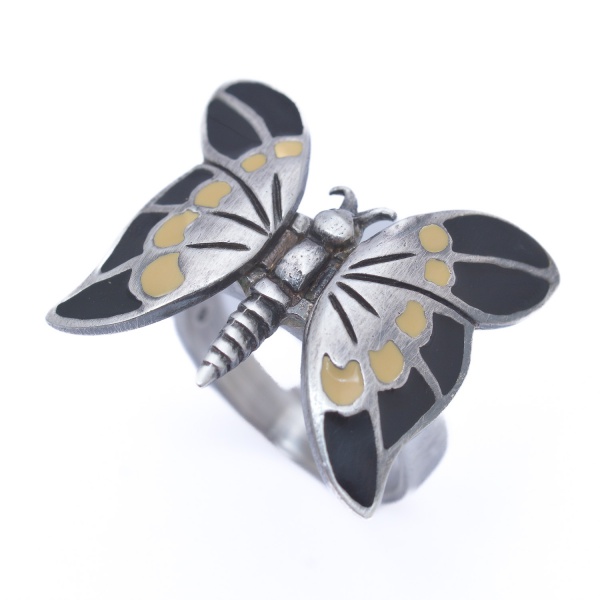 • Anel de prata com borboleta esmaltada. Aro 19 / borbolrta 2,5x2 cm