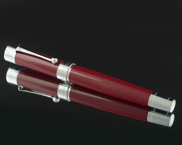 • Caneta tinteiro, corpo cor telha com platinado. Pena prateada Iridium Germany.