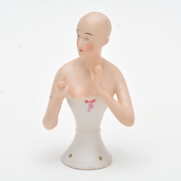 • Coleção Half Doll - jovem senhora (biscuit). Base marcada Germany e numerada. Pequenas perdas nas pontas dos dedos.12x7,5 cm