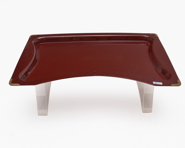 • Anos 70 - Elegante Bandeja de serviço em acrílico espesso, na cor vinho profundo, de superfície lisa e brilhante. Design curvilíneo das bordas elevadas, confere estabilidade e funcionalidade, além de valor estético. Apresenta pernas articuláveis em acrílico transparente, permitindo uso tanto como bandeja tradicional quanto como mesa auxiliar elevada, ideal para café da manhã, serviço de apoio ou composição decorativa. Muito conservada. 60x40x21 cm montada